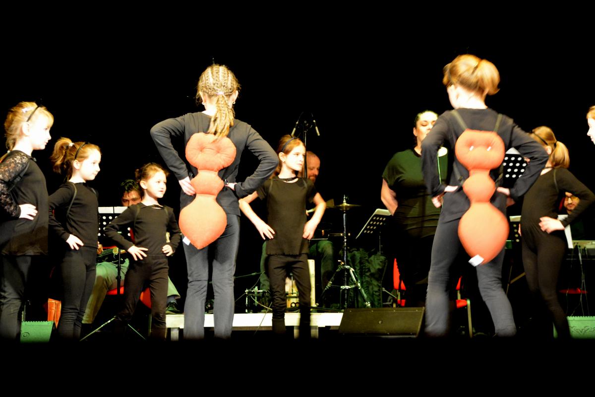 Krtkův den – pohádkové představení plné písniček, tance a divadelních scének za doprovodu živé kapely a hudebních nástrojů. Foto: Mgr. Lucie Boháčová.