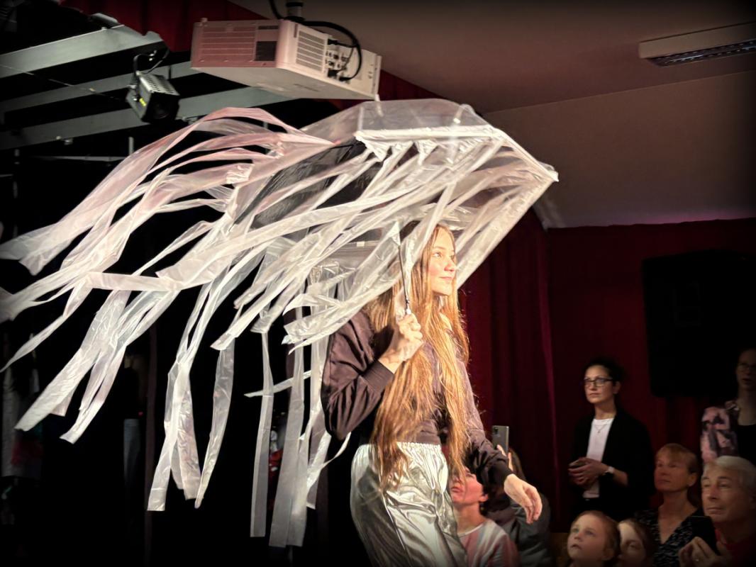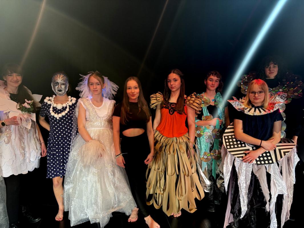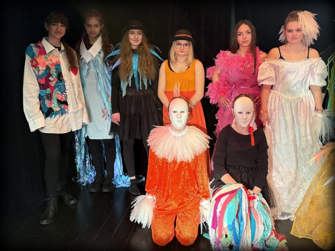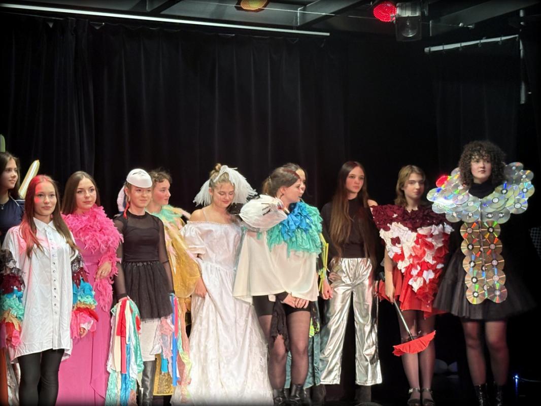 První módní přehlídka ZUŠ – dne 18. 3. 2026 proběhla módní přehlídka, která byla součástí vernisáže studentů výtvarného ateliéru Mgr. Lucie Boháčové. Bylo to úžasné a originální zpestření dne. Spojily se zde síly VO pod vedením p. uč. Mgr. Lucie Boháčové a TO pod vedením p. uč. Evy Rychetník Rohanové. Modely byly vytvořeny z alternativních materiálů, přehlídka byla rozdělena do 3. částí – bílo černá, romantická a barevná. Foto: Mgr. Lucie Boháčová